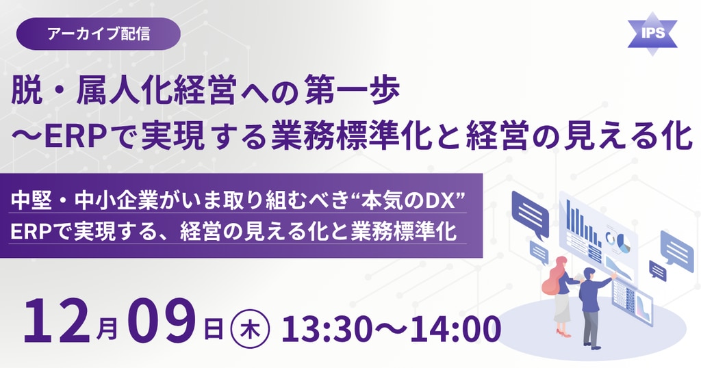 12/9(火)13:30開催 脱・属人化経営への第一歩 ~ERPで実現する業務標準化と経営の見える化